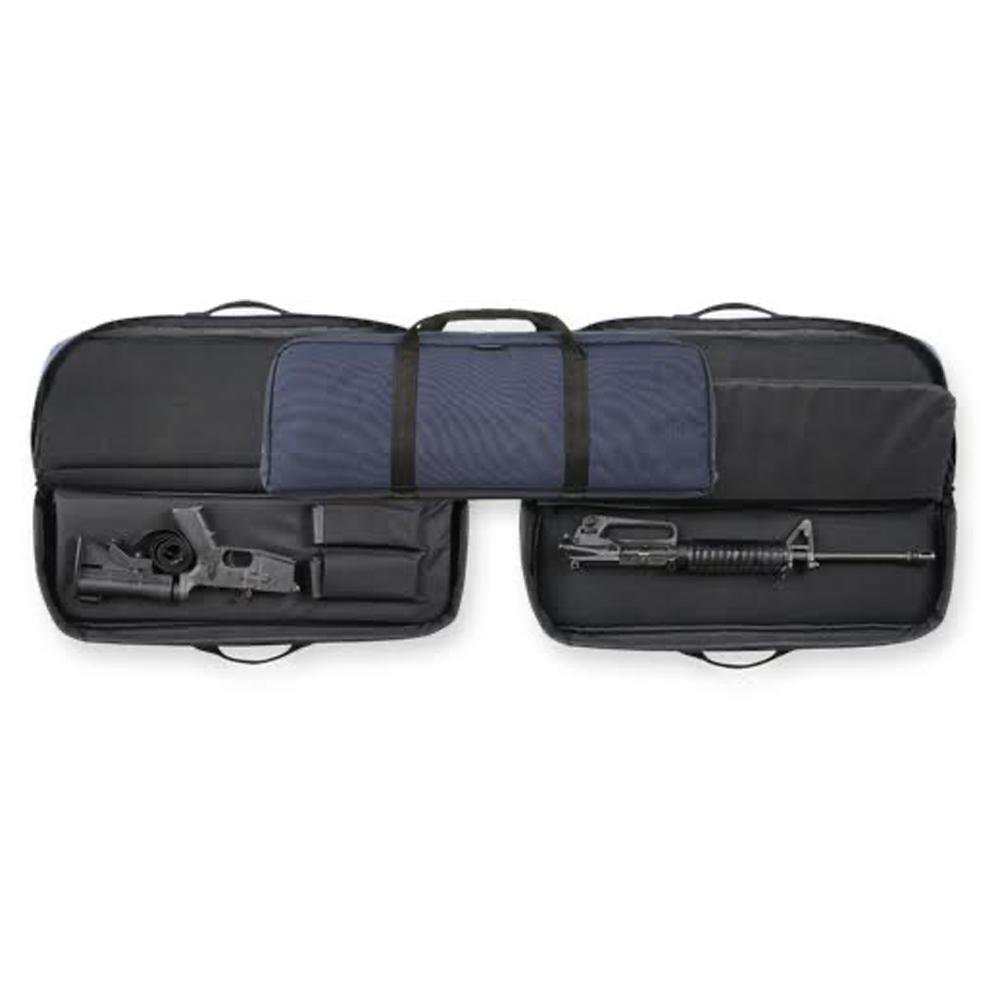 The "Ultra Compact" discreet carrying case is the industry's smallest case designed for the AR-15. The unique design allows the weapon to be stored and transported by removing the pin and screw to break the weapon into two pieces. The small shape navy color and absence of external pockets offer a very discreet method of transportation.