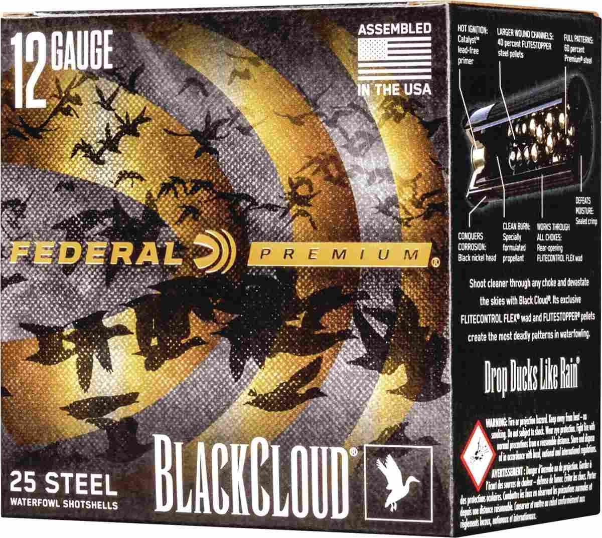 The best load in waterfowl hunting has never been so deadly. Black Cloud®FS Steel® is now equipped with the FLITECONTROL FLEX? wad to deliver improved pattern density and consistency through both ported and standard waterfowl chokes. The wad’s redesigned rear-deploying petals and side-mounted vents stimulate the payload for separation from the wad at the ideal moment for dense deadly patterns. Plus the efficient Catalyst? lead-free primer and clean-burning temperature-stable propellant significantly decrease residue in the barrel.