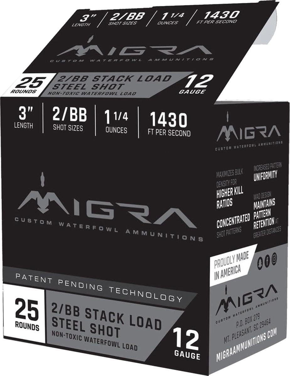 Migra Waterfowl Steel Shot Shotshell 12 ga 3″ 1-1/4 oz 1430 fps #2-BB 25/ct