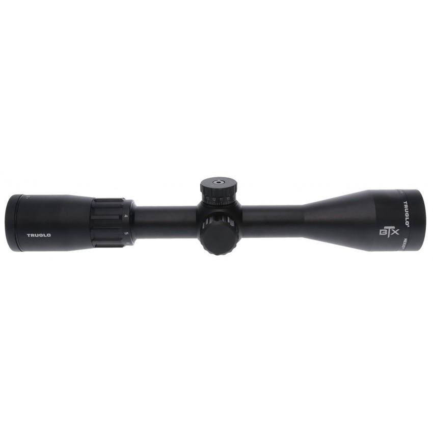 The TruGlo Nexus Rifle Scope featues a glass etched duplex reticle that can be used without illumination and 3 interchangeable turrets (MOA 350 Legend and 450 Bushmaster). It also has a rubber-coated speed-focus eyepiece and specially formulated multi-coating that provides maximum brightness clarity and contrast. The aggressive grip machining on control surfaces allows for easy use with winter gloves and the Ballistic Turret Xchange allows the use of interchange ballistic turrets.
