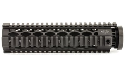These unique forearms feature diamond shaped heat vents, an extended top rail for gap-free installation, T marked rails to mark accessory locations, they accept their end caps, and utilize their anti-rotation screws for secure installation. The forearms and barrel nuts are made of 6061-T6 aluminum and hardcoated to military specifications. The jam nut and anti-rotation screws are steel and plated a matte black finish to match.